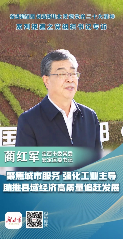 新甘肃·甘肃日报记者 杨唯伟 “党的二十大是在全党全国各族人民迈上全面建设社会主义现代化国家新征程、向第二个百年奋斗目标进军的关键时刻召开的一次十分重要的会议,大会在政治上、理论上、实践上取得的一系列重大成果,是我们党团结带领人民全面建设社会主义现代化国家、全面推进中华民族伟大复兴的政治宣言和行动纲领。”日前,定西市委常委、安定区委书记蔺红军在接受甘肃日报记者采访时说。 蔺红军表示,安定区将全面学习、全面把握、全面落实党的二十大精神,结合省委“一核三带”区域发展格局和“四强”行动要求,立足全区工业主导型和城市服务型发展定位,把做大做强县域经济作为推动经济社会发展的重要力量和实现高质量发展的重要支撑,牢记“三个务必”,主动担当作为,奋力谱写全面建设社会主义现代化安定新篇章。 安定区将紧紧围绕党的二十大报告关于“加快构建新发展格局,着力推动高质量发展”工作要求,把人民对美好生活的向往作为奋斗目标,把牢“三新一高”导向,以“四强”行动为抓手,深入实施工业强区、产业兴区、文商活区三大战略,狠抓马铃薯、草牧、蔬菜三大产业,守牢巩固脱贫成果、生态环保、安全稳定三大底线,聚力项目投资、城市经济、教育优先三大重点,强化理念、人才、作风三大保障,唯干唯实唯先、苦干实干巧干,高效推动“强县域”行动落到实处,全力巩固提升“全省2021年度县域经济发展十强县”成果,加快县域经济高质量追赶发展。 一是聚焦“强县域”,谋实追赶发展新举措。牢固树立“项目为王”理念,按照“冬备春干”和“干着今年、谋着明年、想着后年”的思路,抢抓党的二十大胜利召开和“十四五”规划中期调整等机遇,谋划一批大项目、好项目,补充完善项目建设“一总六分”清单,做实做细项目前期工作,支撑投资稳定增长。围绕工业主导型定位,深入实施工业发展“333”行动计划和“工业产业攻坚大突破年”行动,壮大一批发展基础好、增长潜力大、产业链条长、市场竞争力强的产业集群。同时,坚持党建引领,强化科技、金融、人才要素保障,为县域经济发展创造良好环境。 二是聚焦“强工业”,培育经济发展新动能。围绕“强龙头、补链条、聚集群”,以“三化”改造为方向,以产业链延伸为重点,下大力气盘活“僵尸企业”,加快传统产业转型升级。谋划引进一批产业加工、先进制造、新能源等方面的重点工业项目和企业,建立入规企业梯次培育库,加快新动能培育。进一步优化营商环境,全面落实工业产业链长制度,紧盯企业融资、技术等方面的困难,强化服务保障,加强解困纾困,确保企业轻装上阵、高效运行。 三是聚焦“强农业”,激发特色产业新活力。突出农业优先型定位,紧盯农业“5678”关键指标和畜牧业“两个20%增速支撑下的四翻番、八提升”目标,将土地、资金等要素向“川河经济带”聚集,加快生态草牧、丝路寒旱、蔬菜和现代种业4个产业园区建设,推动马铃薯、草牧、蔬菜等特色优势产业提质增效。同时,加快构建以劳务产业为主的“月产业”,畜牧养羊和设施种植为主的“季产业”,以及马铃薯种植等产业为主的“年产业”,着力提高农民收入水平。 四是聚焦“强服务”,打造宜居宜业新环境。按照“外畅通、内循环”的思路,积极配合做好定西民用机场、陇海铁路线改线等项目,加快推进高速公路延伸连接线及区内县道建设,推动交通互联。牢固树立“大兰州”理念,积极融入“一带一路”“1小时核心经济圈”,加快陇中仓储商贸物流中心建设,全力打造以安定为中心的“1+4”现代区域物流基地,促进物流互融。围绕城市总体规划,大力推进“十大城建项目”,实施城市更新行动,持续加强城市绿化加密和日常管理,不断提高综合承载能力和服务水平。