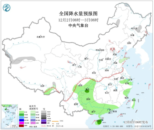 降温过后,气温又会快速回升,北方大部4日至5日就会回归正常水平。6日至7日,从东北到江南最高气温会普遍高于常年同期。例如哈尔滨6日最高气温将重回冰点以上,长春升至4℃,郑州、合肥、南京更是可达16至18℃。 北方大部雨雪稀少 南方降雨短暂增多 干燥有所缓和 近期,我国雨雪稀少,刚刚过去的11月,我国大多数地区降水偏少,北方大部降水量普遍不足10毫米。 进入12月,我国大部雨雪稀少的格局持续,不过今明两天在西南地区东部、浙江北部、华南等地还有些雨水,后天(4日)起随着冷空气南下控场,阴雨迅速消退,空气将再度变得干燥起来。 中央气象台预计,2日8时至3日8时,黑龙江西北部和南部、新疆南疆西部和南部山区、西藏西北部和东南部、山东半岛、辽东半岛等地部分地区有小雪或雨夹雪,其中,新疆南疆西部山区等地部分地区有中雪。浙江北部、福建东北部、西南地区东部、华南大部、海南岛等地部分地区有小到中雨,其中,海南岛东北部等地部分地区有大雨。