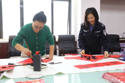 “骏马扬蹄护万家安宁,警徽铸魂守一方净土”“马跃新程担忠诚使命,警守初心护盛世祥和”……一副副散发着清新墨香的喜庆春联跃然纸上,一张张寓意吉祥的“福”字温暖人心,既承载着对新春佳节的美好祝愿,也饱含着对民辅警辛勤付出的高度赞誉,为即将到来的春节增添了浓厚的喜庆祥和氛围,也让警营处处浸润着传统文化的深厚底蕴和爱警暖警的温情暖意。