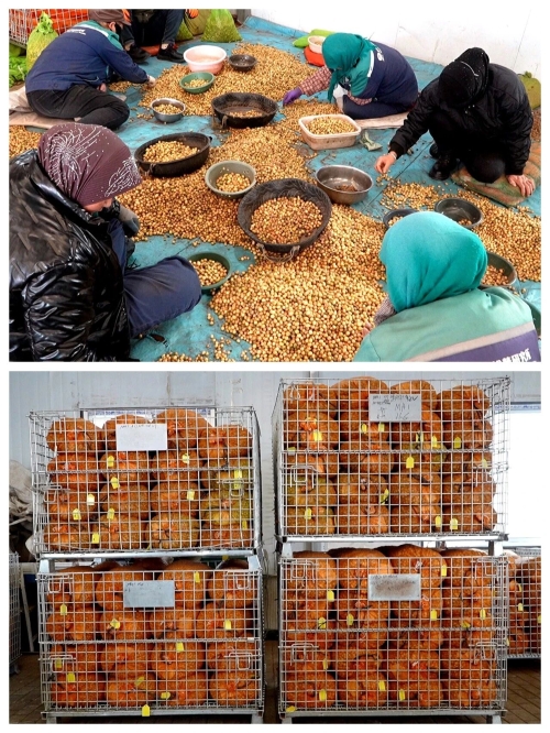 在分拣车间内,务工人员张苗苗按照品种、等级分类筛选马铃薯原原种,不多时,一盆分拣好的原原种就被放入身旁的编织袋里。