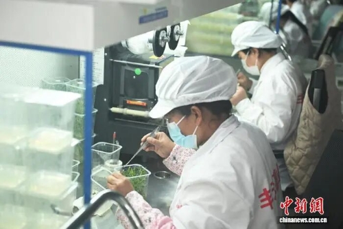 3月29日,位于定西市安定区鲁家沟镇小岔口村的马铃薯产业园组培室里,技术人员培育马铃薯脱毒苗。中新社记者 李亚龙 摄 “从脱毒苗到原原种,再到原种、一级种,最后才成为人们餐桌上的商品薯。”杨富宝说,这条梯级繁育体系,是定西马铃薯走向世界的根基。 “我们不仅做主食,还做零食,把马铃薯端上餐桌、摆进超市,目前已建成马铃薯全产业链。”甘肃薯香园农业科技有限公司工作人员刘宗信介绍说,从最初的种业推广,到自主产品研发,企业产品线已覆盖马铃薯全粉、曲奇饼干、薯条薯片三大类。 在定西,上述类似加工企业有近30家,加工能力96万吨。精淀粉、全粉等传统加工体系稳固,薯条、薯片等休闲食品快速发展。更引人注目的是,“定西宽粉”异常火爆,开发出麻辣、金汤、浆水、番茄、酸辣等多口味系列产品120多款。2025年,“定西宽粉”产值突破50亿元,带动马铃薯全产业链产值达到280亿元。