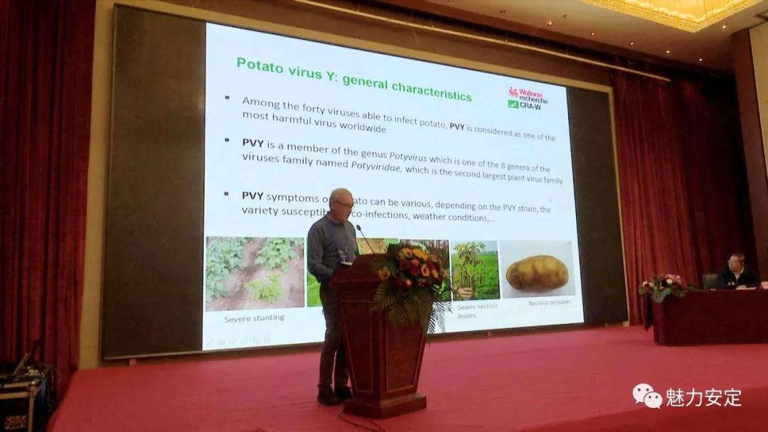 定西马铃薯研究所董事长李进福、加拿大农业部马铃薯研究中心研究院李修庆以及比利时瓦隆农业研究中心马铃薯研究所所长让·路易斯等国内外专家,分别就定西马铃薯种薯质量、气候变暖对马铃薯生产和产量影响、马铃薯种薯生产中几种防止PVY扩散配套策略评价等内容作了报告。