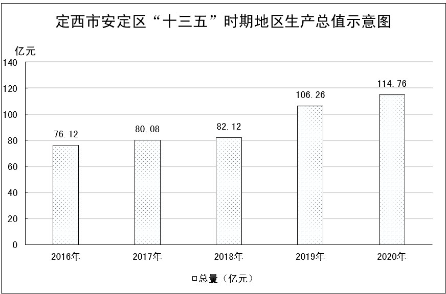 一、“十三五”时期经济社会发展取得历史性成就 “十三五”以来,面对贫困面大、贫困程度深、贫困人口多的基本区情,面对经济下行压力持续加大,多重约束趋紧的复杂形势,区委、区政府以习近平新时代中国特色社会主义思想为指导,深入贯彻党的十九大和十九届二中、三中、四中、五中全会精神,认真落实习近平总书记视察甘肃重要讲话和“八个着力”重要指示精神,统筹推进“五位一体”总体布局,协调推进“四个全面”战略布局,坚持稳中求进工作总基调,以高质量发展和创新驱动为引领,牢固树立新发展理念,紧紧围绕“致力脱贫攻坚、加快转型升级、建成小康安定”的目标要求,抢抓机遇,开拓创新,攻坚克难,砥砺奋进,“十三五”规划总体目标基本实现,经济社会发展取得历史性成就,为“十四五”发展打下了坚实基础。 ——脱贫攻坚取得历史性成就。全区176个贫困村全部退出,3.1万户11.2万贫困人口全部脱贫,2019年实现整区脱贫摘帽目标。贫困人口“两不愁、三保障”问题得到彻底解决,实施易地扶贫搬迁0.83万户3.67万人,1.44万户存量危房全部改造,农村住房安全得到全面保障;实现了农村安全饮水全覆盖,历史性地解决了群众吃水难问题;兜底保障政策实现了应保尽保、应兜尽兜。农村基础设施和公共服务体系不断完善,建制村全部通沥青(水泥)路,行政村动力电、宽带网络、标准化村卫生室、有需求贫困村幼儿园实现全覆盖,贫困人口就医、上学充分保障。东西部扶贫协作、中央单位定点扶贫取得显著成效,行业扶贫、专项扶贫、社会扶贫联动的大扶贫格局全面形成。贫困发生率由2013年底的28.11%下降到0,绝对贫困问题得到历史性解决。 ——综合实力大幅提升。“十三五”末,全区实现地区生产总值 114.76亿元,较“十二五”末增加44.55亿元。人均 GDP达到26829元,较“十二五”末增加10328元。社会消费品零售总额达到60.03亿元,较“十二五”末增加24.75亿元。一般公共预算收入达到4.41亿元,较“十二五”末增加0.59亿元。 ——经济结构持续优化。农业生产保持稳定。粮食总产量保持在40万吨左右,马铃薯、草牧、蔬菜等特色优势产业提质增效,“中国薯都”“中国西部草都”加快建设,农业产业化水平不断提高。工业综合实力稳步增强。高新技术企业达到12家,规模以上工业企业达到38户,规模以上工业增加值年均增长8.94%。现代服务业加快发展。汽车、旅游、住房、健康等消费比重大幅度提升,消费层次不断提高,服务业发展对经济增长的拉动作用持续增强。三次产业结构调整为15.3:17.7:67。 ——基础条件明显改善。“引洮圆梦工程”全面建成运行,9.19万农户和12.25万亩农田受益。提升改造省、县、乡道路262公里,新建农村公路312公里,硬化自然村组道路 800余公里,乡村公路通畅率达到100%,成功创建“四好农村公路”全国示范县。统筹推进城区、小城镇建设,城乡面貌发生巨大变化,水、电、路、气、热、网等市政基础设施进一步完善,市区建成区面积扩大到26平方公里,城镇化率达到52.65%。 ——社会事业全面进步。五年新增城镇就业20773人,城乡居民人均可支配收入分别达到28935元、9206元,较“十二五”末分别增加9045元、3169元。教育资源布局持续优化,学前三年毛入园率达到97%,九年义务教育巩固率达到100%,高中阶段毛入学率达到97.6%。区域医疗资源实现优化整合,区有二级综合医院、乡有标准化卫生院、村有标准化卫生室的三级医疗服务体系全面建立。城镇居民医保和新农合并轨运行,“先诊疗、后付费”和“一站式”结报制度全面推行。文化体育和养老事业健康发展,社会保障体系日益完善。 ——生态环境持续改善。大力实施生态保护和流域治理工程,森林覆盖率、草原植被覆盖率、水土流失治理程度分别达到18%、73.8%和80.4%。污染防治攻坚行动深入推进,关川河水质持续改善,“智慧环保”平台建成运行,市区空气质量优良天数比例保持在95%以上。扎实开展全域无垃圾综合治理行动,城镇生活垃圾和污水处理率分别达到100%、95.28%,城乡人居环境持续改善。 ——改革开放不断深化。“放管服”改革成效显著,“互联网+政务”服务、“一窗办、一网办、简化办、马上办”全面推行,区乡村三级政务服务体系全面建立,“多证合一”改革全面实施,营商环境持续优化。农村土地“三权分置”改革扎实推进,村集体资产清产核资工作全面完成。医药卫生体制改革有序推进,药品零差率销售全面推行。财税、金融、教育、科技、国企、户籍制度等领域改革稳步推进。积极融入大兰州经济圈,有序推进定西生态科技创新城先行起步区建设。 ——全面从严治党纵深推进。“两学一做”学习教育常态化制度化、“不忘初心、牢记使命”主题教育扎实开展,领导班子和干部队伍建设不断加强,基层基础进一步夯实。反腐败斗争取得压倒性胜利,不敢腐、不能腐、不想腐的体制机制更加完善。风清气正的干事创业氛围日益浓厚,各级干部执行力明显增强,政府效能进一步提高。 回顾“十三五”历程,全区经济社会发展成就显著,并积累了宝贵经验。一是坚持党的领导。始终把增强“四个意识”、坚定“四个自信”、做到“两个维护”摆在最核心的地位,把习近平总书记的深切关怀、党中央的战略精神、省市的强力部署与安定实际紧密结合起来,确保各项事业始