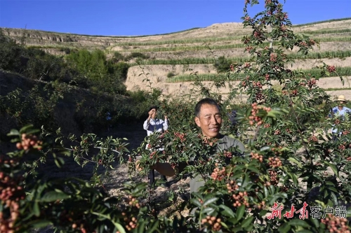 通渭县襄南镇高家店村千亩花椒标准化种植示范基地内,种植户正在采摘花椒。新甘肃·甘肃日报记者 吕亚龙 用绿 美好生活的生态底色 “种树能当饭吃吗?”曾经,一些人常常发出这样的疑问。 随着群众生活条件不断改善,林草治理模式的不断发展,在今天,这个问题终于有了肯定的答案。 “定西林草生态治理成效已经从‘生态型’逐步转向‘效益型’。”胡全良介绍,定西市在抓造林绿化的同时,持续推进林业产业结构调整,不断提高林地综合经营效益,以经济林果、种苗花卉、林下种植养殖、林产品采集加工、生态旅游等为代表的林业产业经济蓬勃发展。 通渭县新景乡紧邻平凉市静宁县,一直都有种植苹果的传统,全村257户人,有223户是果农。 以前,苹果散户散种,果园零零星星,既没有产量,也没有规模。 近些年,新景乡作为县里的苹果种植试点,逐步改良果树品种和种植模式,更优质、更值钱的“惠民短枝”系列逐渐代替了经济效益差的老品种。 站在新景乡前山郑梁上,两侧的坡地上果树成林,空气中弥漫着清新的果香,沐浴着秋日的阳光,果农们忙着采摘、分拣、装箱。 “这里主要以晚熟品种为主,9月底取袋,国庆节采摘上市。”王湾村村主任郑长吉说,全村苹果4650亩,进入盛果期的就有3800亩。 为了发展苹果产业,这些年县里的林草技术人员和乡镇干部忙个不停。一面组织群众进行老果园优化提升改造,一面为群众培训种植技术,地头教、园里学,不仅组织群众去静宁现场观摩,还专门组织种植大户去安徽、重庆“取经”。 郑长吉说,由于高海拔山地的苹果口感好,地头收购价也远超普通品种。去年全村苹果收入1900多万元,占全村收入的八成。 如今,种苹果的、收苹果的、贩苹果的,王湾村几乎人人都在靠苹果“吃饭”。 环境优、生态好、产业强、农民富,在经济林果三年倍增行动的推动下,生态效益和经济效益双赢的格局已现雏形,林果经济为推动经济可持续发展奠定了基础。 襄南镇高家店村的花椒园里,保险公司的工作人员正在现场查看旱灾理赔事宜。 “如今有了农业保险,旱涝灾情带给群众的损失就会大大减少。”襄南镇副镇长孙鹏说,2018年,村里谋划发展经济林,大伙一商量,花椒是最适合这里的树种。 有了目标,村干部带着群众学习种植技术,找优良品种,前前后后跑了十几趟,终于定下了早熟大红袍和晚熟秋椒两个品种。 政府重视,干部认真,村民积极,1100亩花椒园顺利落户高家店村。请林业专家下地教学,村干部工作之余看书自学,短短几年里,高家店村涌现出一批花椒种植好手。 种植大户高世民家里的50亩花椒陆续挂果,今年预计能收2000斤。“村里像我这样的种植户不在少数,种得好的一年能收入五六万元。”高世民说。 定西各县区充分利用资源优势,在不改变林地用途前提下,合理利用林地空间,积极培育发展林下经济,推广“合作社+基地+农户”的发展模式,让群众实实在在看见绿色的“钱景”。 渭源县南谷玫瑰产业园里,上湾村村民牛冬琴熟练地采摘着玫瑰花,凭借这份甜蜜的工作,她每月可以拿到2000多元的工资。