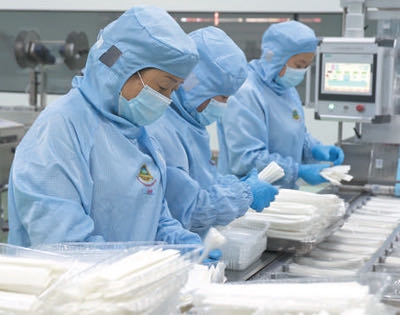 定西一家淀粉制品企业的工人在包装马铃薯宽粉。