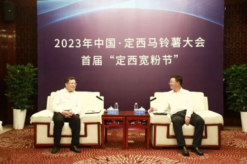 汪尚学说,定西位于甘肃中部,地处黄土高原、青藏高原和西秦岭交汇地带,复杂多样的地质地貌,是适宜马铃薯生长的最佳天然产地。定西种植马铃薯历史悠久,马铃薯产业在定西有着深厚的历史积淀。近年来,定西坚持把加快发展“定西宽粉”产业,作为马铃薯产业延链补链强链的重要路径和工业化引领农业产业追赶发展的突破口,按照“远学柳州螺蛳粉、近学兰州牛肉面”的思路,深入挖掘定西宽粉产业文化内涵,持续推进标准化生产、规模化经营、工业化发展、品牌化营销,致力打造“定西宽粉”公共区域品牌,促进马铃薯产业延链发展、产值扩张、产业增收。希望各位嘉宾多为“定西宽粉”产业发展把脉支招、出谋划策,也诚挚邀请大家常来定西走一走、看一看,共享合作机遇,共谋未来发展。 中国商报社社长、总编辑陈高宏,中国烹饪协会副会长邓立代表嘉宾发言。他们表示,定西马铃薯产业发展起步早、基础好,“定西宽粉”极具市场消费潜力,将进一步加强沟通对接,深化合作层次,助力“定西宽粉”品牌效应取得更大突破,马铃薯产业链取得更大发展。