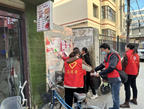 引导群众参与全民整治 将“服务群众、教育群众、发动群众”贯穿于“百日行动”全过程,对临街商户、居民进行门前“五包责任制”的宣传引导,动员商铺积极担当起门前区域净化美化责任,宣传引导广大人民群众参与环境卫生整治,规范文明行为,有效形成城市管理全民参与、齐抓共管的生动局面。