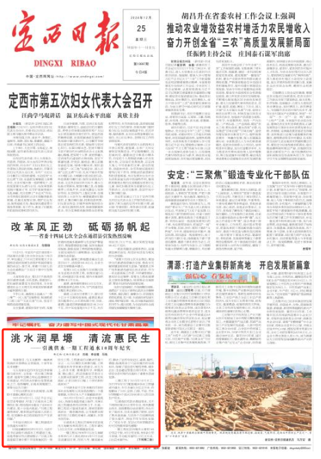 【定西日报】报道安定:洮水润旱塬 清流惠民生 ——引洮供水一期工程通水10周年纪实 |