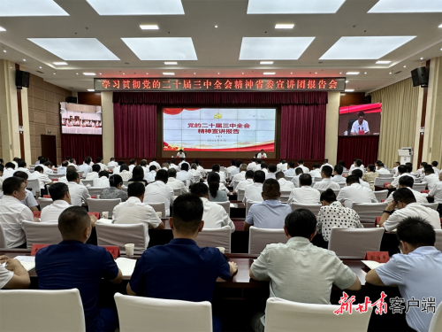 8月13日上午,学习贯彻党的二十届三中全会精神省委宣讲团在定西市宣讲,省委宣讲团成员、省委政研室主任黄克之作宣讲报告。 报告会上,黄克之紧紧围绕习近平总书记在党的二十届三中全会上的重要讲话精神和全会《决定》,结合甘肃、定西改革发展实际,从深刻认识党的二十届三中全会的重大意义、深刻认识进一步全面深化改革的重要性和必要性、深刻认识全会主题、深刻认识进一步全面深化改革的重大原则、深刻认识推进改革需要把握的一些重大问题、深刻认识省委十四届五次全会对全省改革的部署等方面,对全会精神作了全面系统解读和深入阐释。 定西市要求,全市各级各部门要以这次宣讲报告会为契机,把智慧和力量凝聚到落实全会确定的目标任务上来,高举改革旗帜,谋准改革举措,抓实改革任务,奋力谱写进一步全面深化改革、推进中国式现代化的定西篇章。 报告会后,黄克之前往安定区福台路街道体育公园社区开展宣讲,面对面与社区工作者、居民等进行互动交流。