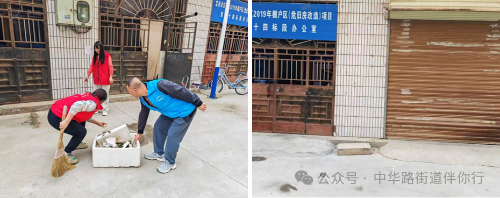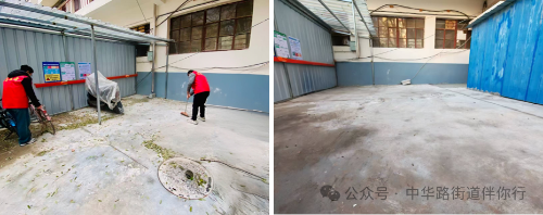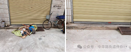 环境卫生整治前后对比 活动现场,志愿者手持扫帚、撮子、铲刀、喷壶等工具,在社区工作人员的统筹调度下分组分工、协同作战。大家重点攻坚楼道墙体、扶手等处的顽固小广告,彻底清扫楼道散落垃圾、清理卫生死角,对乱摆乱放现象逐一整治,不留“脏乱差”死角。经过两个多小时的奋战,小区环境焕然一新:13处卫生死角被清理,约1.1吨生活垃圾被清运,10余处乱摆乱放问题得到整改,人行道上的自行车、电动车也被摆放得整齐划一。 此次行动中,党员冲锋在前,志愿者主动担当,居民从“旁观者”变为“参与者”,既凝聚了党群合力,更唤醒了家园共建意识。下一步,社区将深化“党建引领+网格治理”模式,建立长效管护机制,以“小切口”破解“大民生”,让老旧小区既有“干净颜值”更有“幸福温度”。