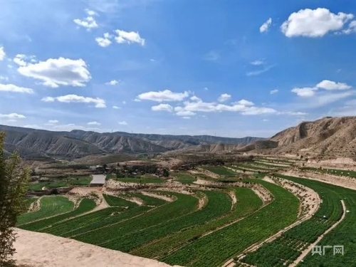 鲁家沟镇万亩马铃薯高产示范基地(央广网发 定西市委宣传部供图) 科技“撑腰” 探索高产高效模式 从1996年定西提出“洋芋工程”到如今马铃薯规模化种植、加工、生产,定西马铃薯从解决温饱的“洋芋蛋蛋”变成了定西的支柱产业之一。 “洋芋工程”近三十年高速发展的进程,安定区鲁家沟镇人看在眼里,急在心里。鲁家沟镇地形崎岖,水源匮乏,马铃薯的生长也因此受限,产量一直难以提升。 随着新一轮东西部协作的启动,该地的马铃薯产业迎来了新的机遇: 2023年10月,山东省委、甘肃省委主要领导在定西考察调研时提出建设“万亩马铃薯高产示范基地”; 2024年4月,1.14万亩马铃薯高产示范基地建成,配套建设总容积1万立方米的蓄水池15座、布设输水管网110.6公里; 2024年9月27日,经测产,鲁家沟镇万亩马铃薯高产示范基地平均亩产达8582.6斤,实现了产量翻番的目标。 “山区示范、引水上山、产量翻番”是如何在这里成为现实的? 安定区鲁家沟镇万亩马铃薯高产示范基地的上空俯瞰过去是绵延不断的大片梯田,为解决缺水的问题,几经调研讨论,青岛市、定西市党委政府决定依托引洮工程水资源优势,在鲁家沟万亩马铃薯高产示范基地配套建设“引水上山”工程。 “以前靠天吃饭,风调雨顺的年头,亩产也只有2000多斤,要是遇上干旱,成本都收不来。”聚鑫农民专业合作社理事长李聚东说,现在,水引到了地头,土豆也“喝”上了洮河水,产量也大幅增长。 引水上山水肥一体化是定西逆境增产的科技密码,解决了旱作山区“靠天吃饭抗旱难”的困境。 “我们探索推行‘提水泵站+高位水池+田间管道’等灌溉模式,在安定区鲁家沟镇建设引水上山工程,提水总高程差369米,让梯田成功喝上了洮河水。”定西市安定区农投公司副总经理常桥介绍,引水上山也要践行农业节水理念,高位水池收集自然降雨,用好每一滴天上水,田间管道实现水肥一体精准灌溉,减少使用地下水。 自从“引水上山”工程实施后,节水灌溉、水肥一体化项目应运而生。“现在地里使用的是水肥一体化滴灌技术,在每个田埂地垄上铺设了软管,每隔30厘米就有一个滴管口,利用物联网技术,对土壤墒情进行自动监测,能做到精准化施水施肥,省水、省工、省肥是最直观的变化,而且种植的马铃薯产量高、品质好。”常桥说。 据了解,定西市安定区将发挥该项目的示范效应,2025年,规划实施引水上山灌溉项目20万亩,覆盖符川、团结、石峡湾等九个乡镇,建成后,全区15.6%的耕地面积将实现高效节水灌溉。 “我们正在谋划把安定区鲁家沟镇万亩马铃薯高产示范基地的发展形式推而广之,在定西更多的农村建设高标准农田。”青岛协作定西第二批挂职干部工作组组长、定西市政府党组成员、市委副秘书长马晓晖说。