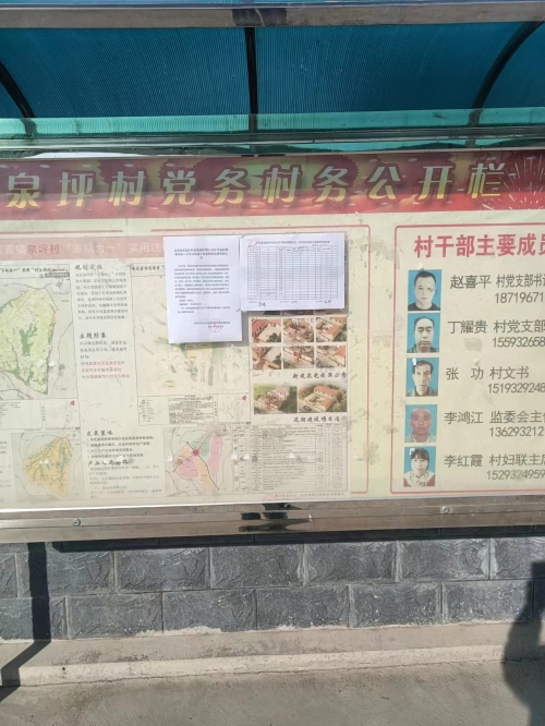 内官营镇泉坪村政务公开栏