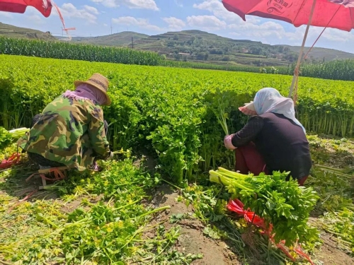 在宁远镇薛川村,明媚的阳光洒满了一望无际的田野,芹菜正迎来一年一度的丰收季。