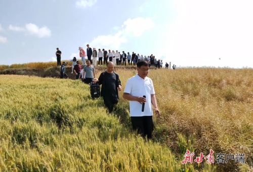 2025年,鲁清林向观摩者介绍抗旱稳产的兰天小麦品种。省农科院供图 在省农科院冬小麦研究所清水试验站,兰天54号小麦品种大旱之年产量表现亮眼,亩产655.2公斤,居27个展示品种的第1位;在秦州区汪川镇,兰天36号小麦亩产619.24公斤。“2025年春旱,小麦生长期间连续60多天未有效降雨,取得这样的产量实属不易!”鲁清林研究员表示。 良法是粮食丰收的保障。甘肃以“高产、节水、高效”分区域分作物提出主攻单产路径措施,在河西及沿黄灌区主推膜下滴灌水肥一体化,中东部旱作农业区主推全膜双垄沟播技术,靶向发力,突破瓶颈。 甘肃把提升农膜覆盖度、水肥一体化推广度、农业社会化服务保障度“三度”作为节水增粮的主攻方向,去年完成旱作覆膜技术3547.7万亩、覆盖度56.2%,增幅居全国第1;推广水肥一体化811万亩、推广度37.2%,实现亩均增产15%、节水40%的显著效果;社会化服务组织对小农户覆盖度41%。 望着眼前金黄灿烂的制种玉米,酒泉富民裕国农技推广服务合作社负责人马铭道出了增产奥秘:“科学种田,帮助农民推广优良种子、水肥一体化技术、病虫害绿色防控等技术2000亩,制种玉米亩均产1000斤、产值2800多元。”