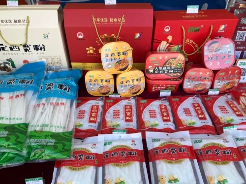 大名鼎鼎的定西宽粉,在这里有无数变种,马铃薯鲜粉、流汁宽粉、酸辣粉、酸菜粉丝、细粉、即食拌粉等等,还有各种口味的原切薯片、黄金薯塔等土豆制品……这里可不是超市,而是位于G30连霍高速公路上的“定西宽粉服务区”。